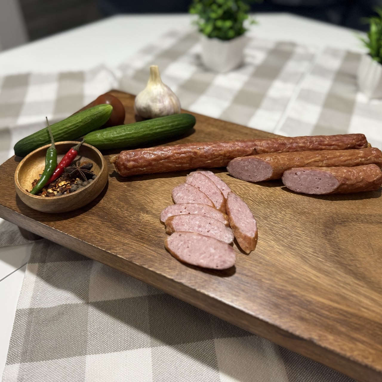 The history of “Krakowska” sausage begins in Poland, in the city of Krakow. It was named after this very city. It is believed that the recipe for “Krakowska” sausage appeared in the 16th century. At that time, local craftsmen from sausage workshops mastered the technology of smoking cooked meat products. They smoked boiled meat, frankfurters, small sausages, but customers were most attracted to sausages twisted into rings. The sausage’s distinctive flavor came from a combination of garlic and spices, while the smoke infusion added aromatic notes. Enjoy the authentic taste of traditional Polish sausage! Our Krakowska sausage is made according to the classic recipe from premium pork with the addition of natural spices.