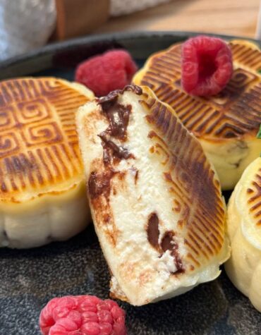 Each pancake is carefully wrapped, preserving the airy texture of the filling. With light pan-frying, a crispy golden crust forms, contrasting with the soft creamy center.
